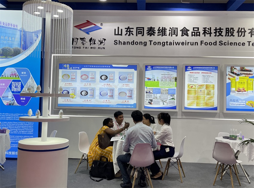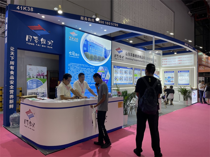 At this exhibition, Tongtai Weirun has brought a number of advantageous products: Sodium benzoate, benzoic acid, zinc benzoate, Potassium formate, Calcium propanoate, Sodium propionate, Calcium acetate, Sodium acetate and other products, which are intuitively displayed to customers from many aspects, such as product raw materials, production process, packaging, customer experience, etc., and have attracted the attention of customers and asked for samples.